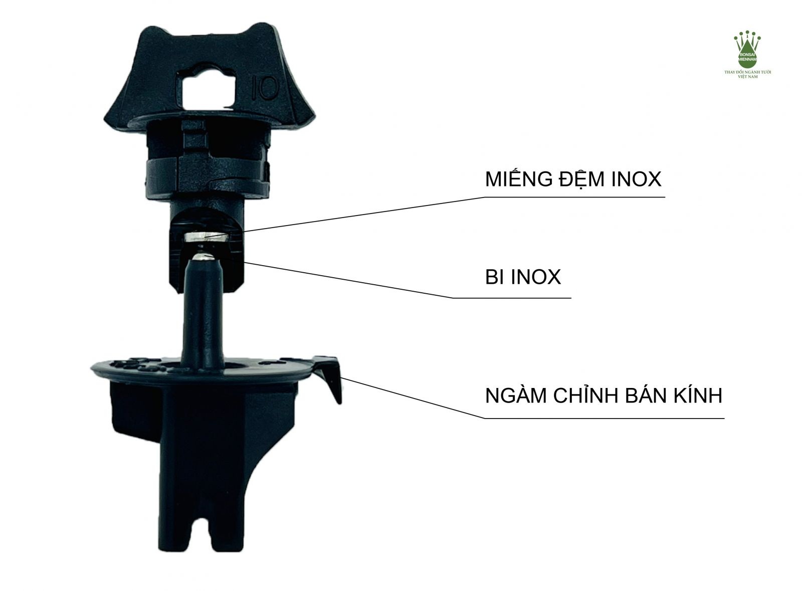 – Ngàm chỉnh bán kính tưới linh hoạt, dễ dàng điều chỉnh lượng nước theo từng giai đoạn sinh trưởng của cây.