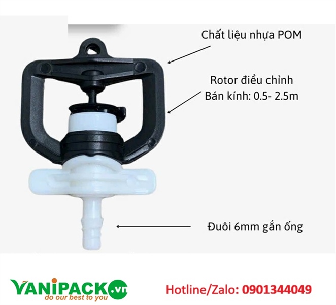 Thiết kế đầu xoay ổn định, phù hợp hệ thống nhỏ giọt – phun sương áp thấp.