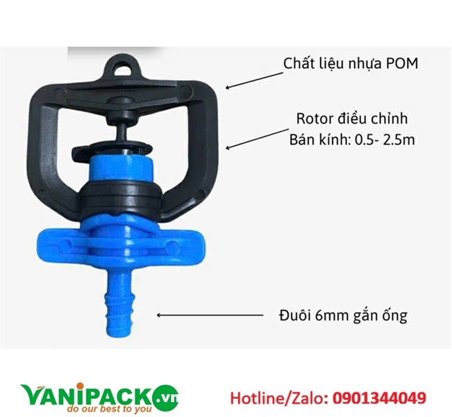 Thiết kế đầu xoay ổn định, phù hợp hệ thống nhỏ giọt – phun sương áp thấp.