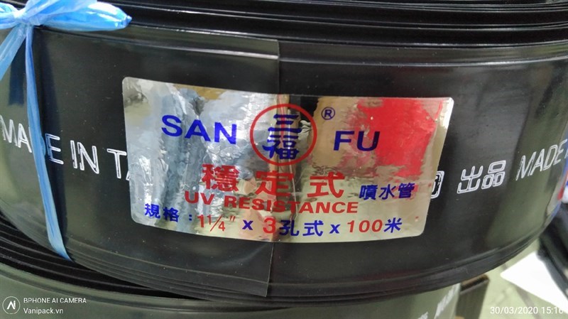 Dây tưới phun mưa Sanfu 34mm, có biên, đục 3 lỗ SANFU34