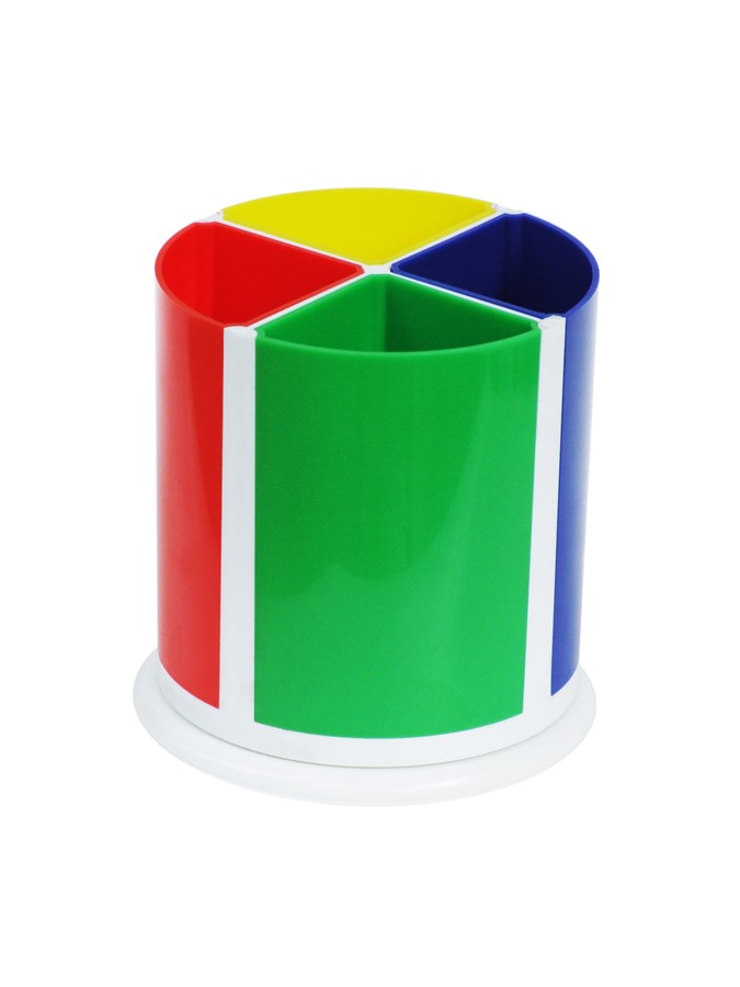 Ly bút được thiết kế dạng tròn có thể xoay 360 độ, chia thành 4 ngăn riêng biệt giúp phân loại bút và dụng cụ dễ dàng. Chỉ cần xoay nhẹ là có thể lấy đúng vật dụng cần dùng.