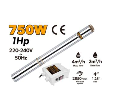 bơm giếng khoan sâu, yêu cầu cột áp lớn và lưu lượng ổn định. Với 10 cánh quạt đa giai đoạn,