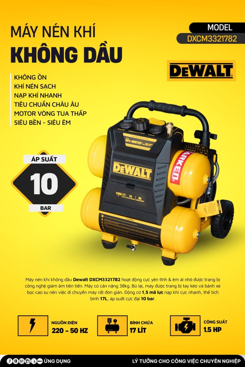 Tên sản phẩm: Máy nén khí không dầu 17L DeWALT DXCM3321782