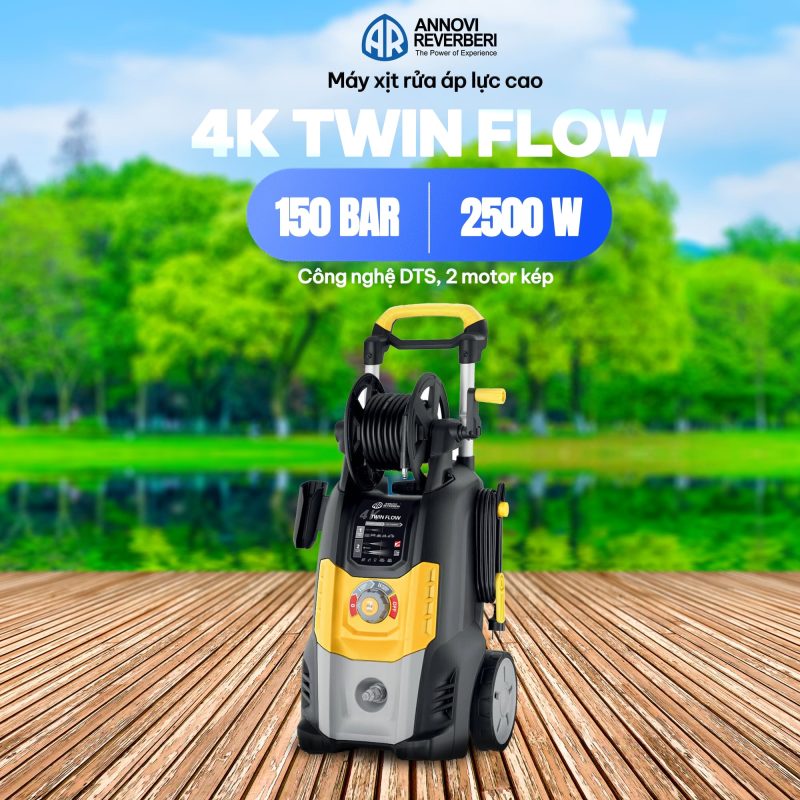+ Tên sản phẩm: Máy xịt rửa chuyên dụng Annovi Reverberi 4K TWIN FLOW – motor kép, áp lực cao 150bar, 2500W