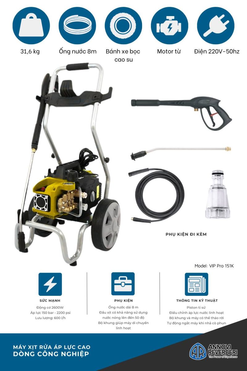Tên sản phẩm: Máy xịt rửa áp lực cao Annovi Reverberi VIP PRO 151K