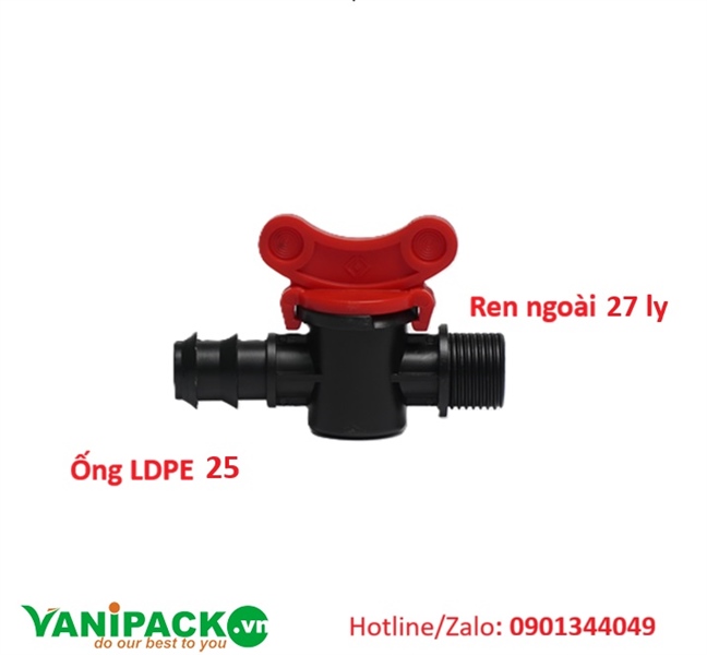 - Tên sản phẩm: Van khóa ren ngoài 27mm ra ống LDPE 25mm (bầu lớn)